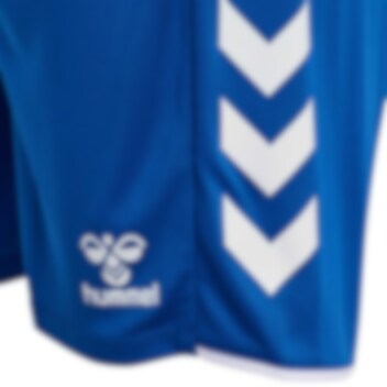 Hummel-logo på venstre side av lår.