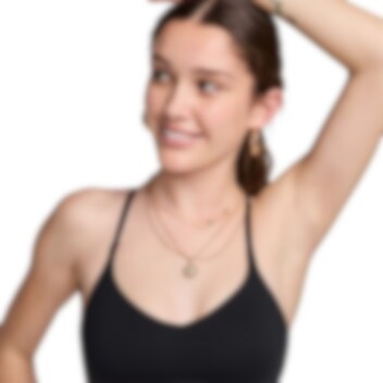 Ikke la noe komme i veien for å uttrykke deg selv i denne slanke, lavprofilerte sports-bh'en. Den lette støtten gir deg et skånsomt hold med mye frihet som er flott for treningsøkter med lav effekt eller komfort hele dagen. Glatt, hurtigtørkende stoff gir BH-en en ren finish slik at du kan bruke den på din måte.