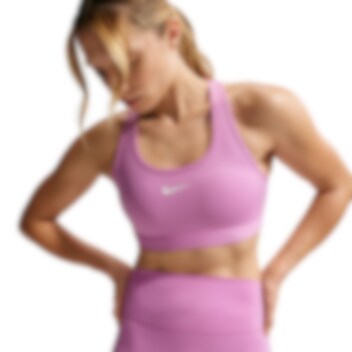 Nike Swoosh Medium Support sports-BH gir stabil støtte når treningsøkten krever mer. Denne polstrede sports-BH-en er laget for trening, løping og høyintensive økter, med sydd polstring som holder seg på plass gjennom hele økten. Svettetransporterende Dri-FIT-materiale og pustende mesh gir komfort, støtte og et tørt treningsplagg fra start til slutt.
