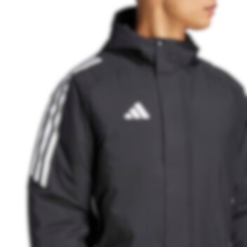 Adidas Tiro 24 Stadionjakke Parka gjør at du holder varmen på kalde dager på banen. Den har forlenget passform, hette med fôring og vattering som gir god varme når du trenger det som mest.