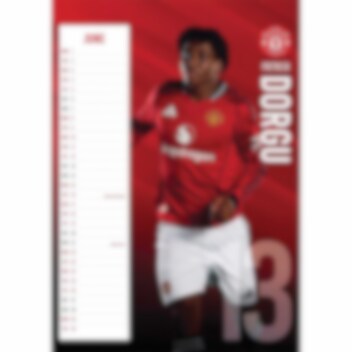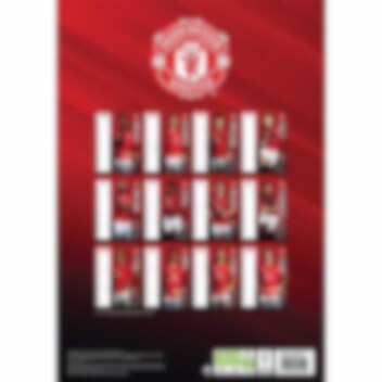 Denne Manchester United A3-kalenderen har bilder av Manchester United-laget, sammen med et månedlig datopanel for å holde oversikt over alle merkedager og kampoppsettet for 2026.