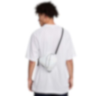 Lomme foran med spennelukking og lommer med glidelås på sidene.