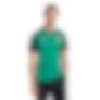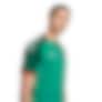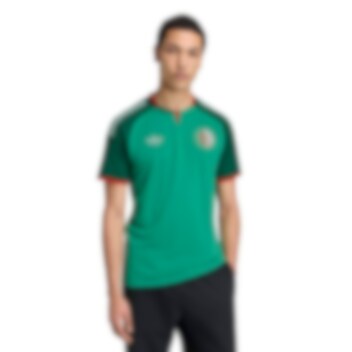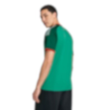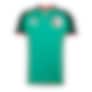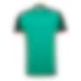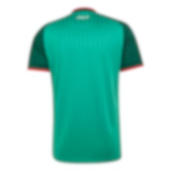 Designet kombinerer en grønn hovedfarge med mørkegrønne ermer, hvite logoer og røde detaljer.