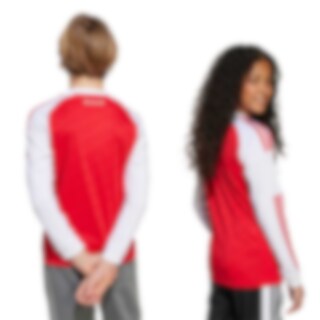 Adidas Arsenal Langermet Hjemmedrakt til barn for 2025/26-sesongen er laget med AEROREADY-materiale som tar vekk svetten fra kroppen, og holder deg tørr og komfortabel under aktivitet og når du heier på laget ditt.