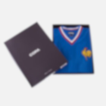Copa Frankrike 1971 Retro Fotballdrakt som ble brukt i året før European Nations Cup i 1972. Landslaget på denne tiden ble bygget rundt et dominant Saint Etienne lag og hadde spillere som Georges Bereta, Bernard Bosquier og Georges Lech. De hadde også andre spillere som stakk seg ut, blant annet PSG-spiller Jean Djorkaeff og midtbanespilleren Henri Michel fra Nantes.