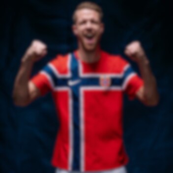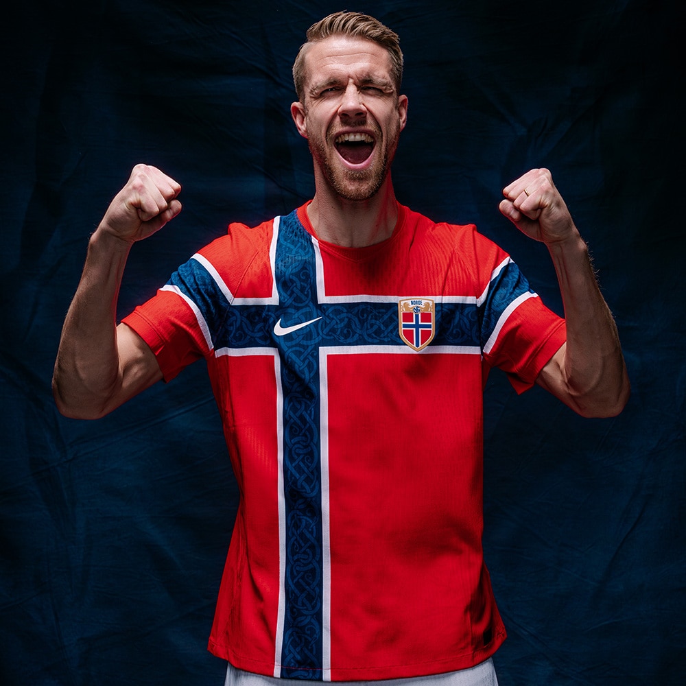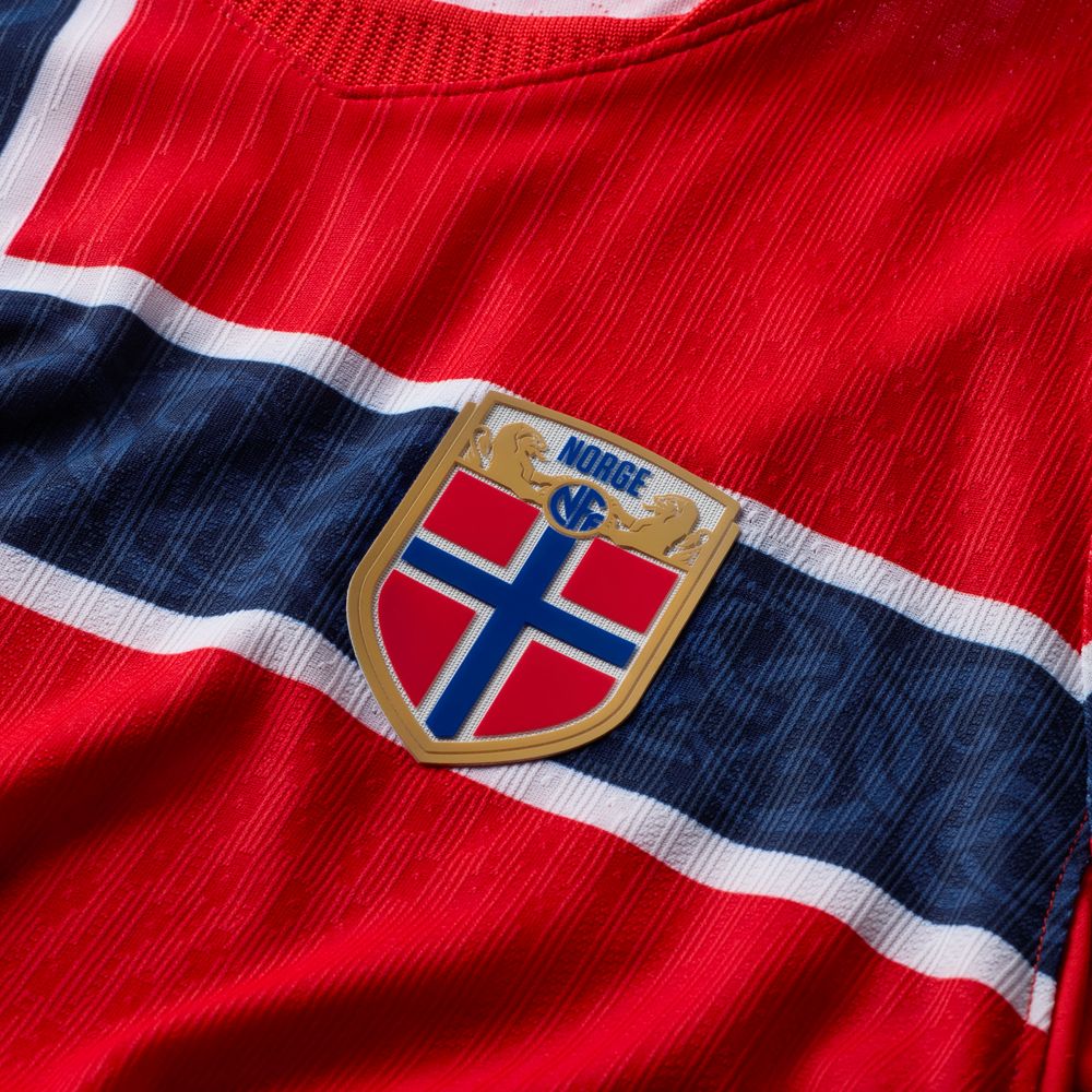 Norges nye hjemmedrakt kommer naturligvis i rødt, hvitt og blått og integrerer det norske flagget i et ekte «pakk deg inn i flagget»-øyeblikk.