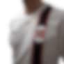 Strikket bånd i Norges farger som krysser flagget på venstre side av drakten.
