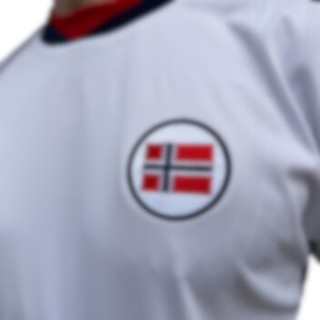 Norsk flagg på venstre side av bryst.