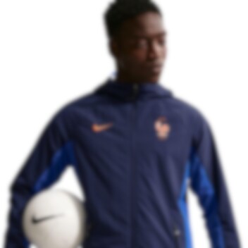 Frankrike sin nye jakke fra Nike for VM 2026 er laget i et vevd materiale med envannavstøtende overflate. Holder deg komfortabel på kampdag og i hverdagen.