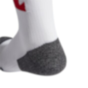 Anatomisk plassert polstring for støtte og beskyttelse på områder under stor påkjenning; Venstre og høyre sokk; Ribbestrikkede kanter og innlegg.