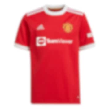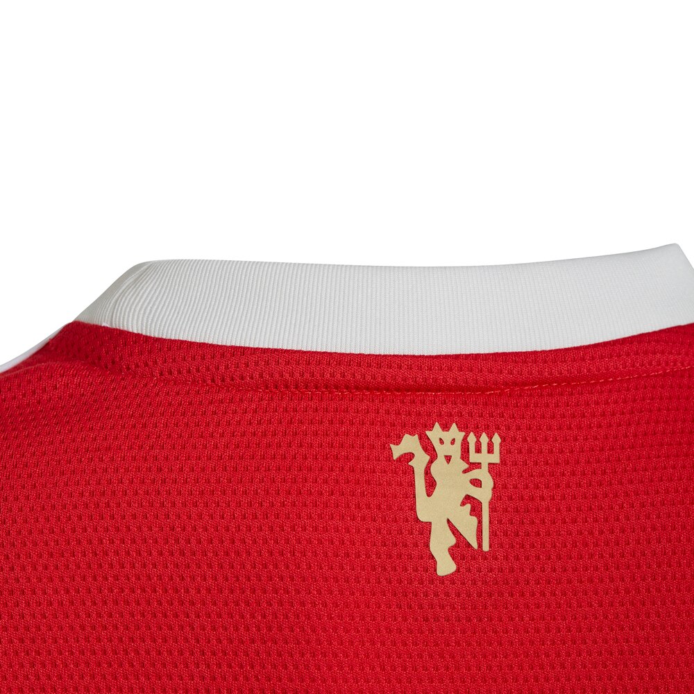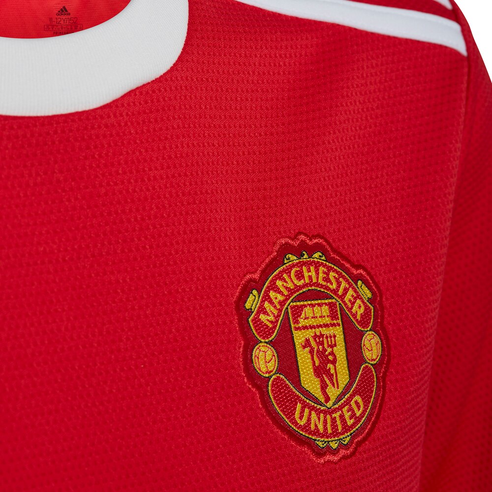 Adidas Manchester United Fotballdrakt 21/22 Hjemme til barn er laget av resirkulert polyester som tar vekk svetten fra kroppen, og holder deg tørr og komfortabel.