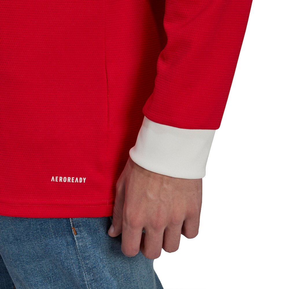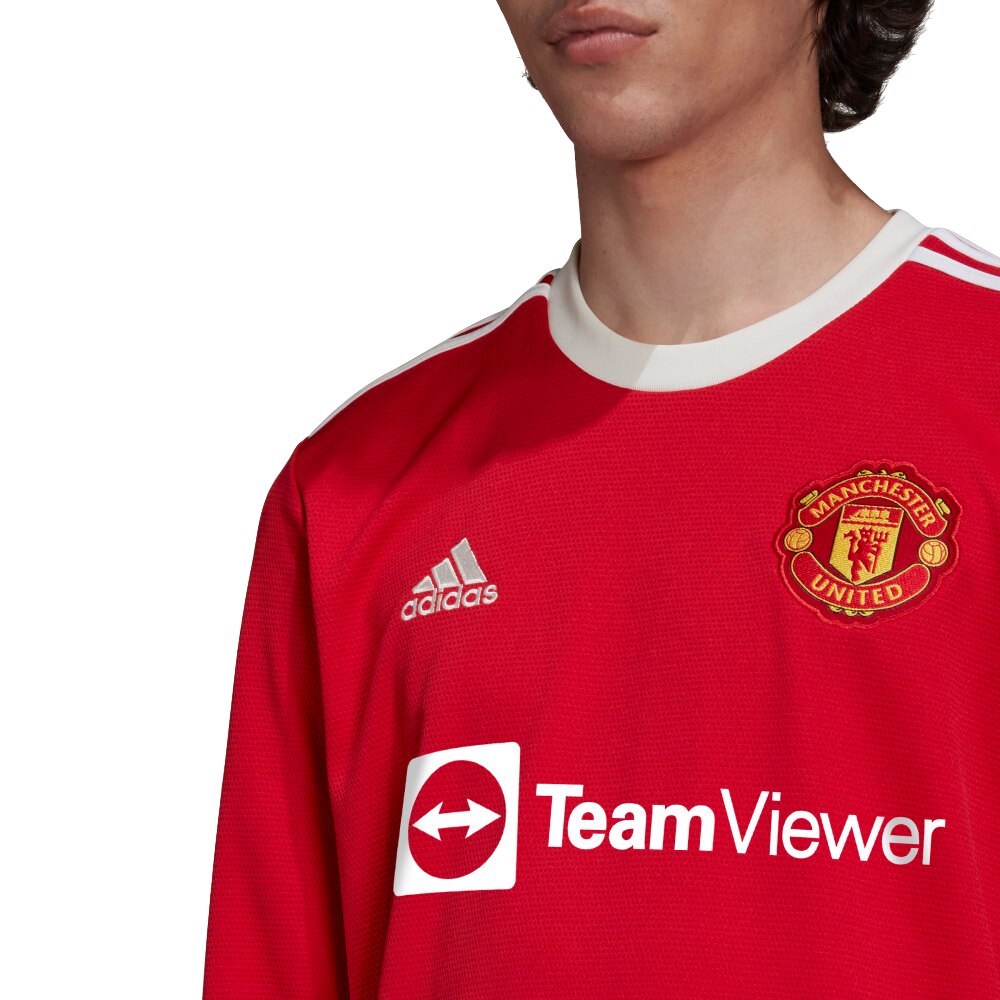 Adidas Manchester United Langermet Fotballdrakt 21/22 Hjemme er laget av resirkulert polyester som tar vekk svetten fra kroppen, og holder deg tørr og komfortabel.