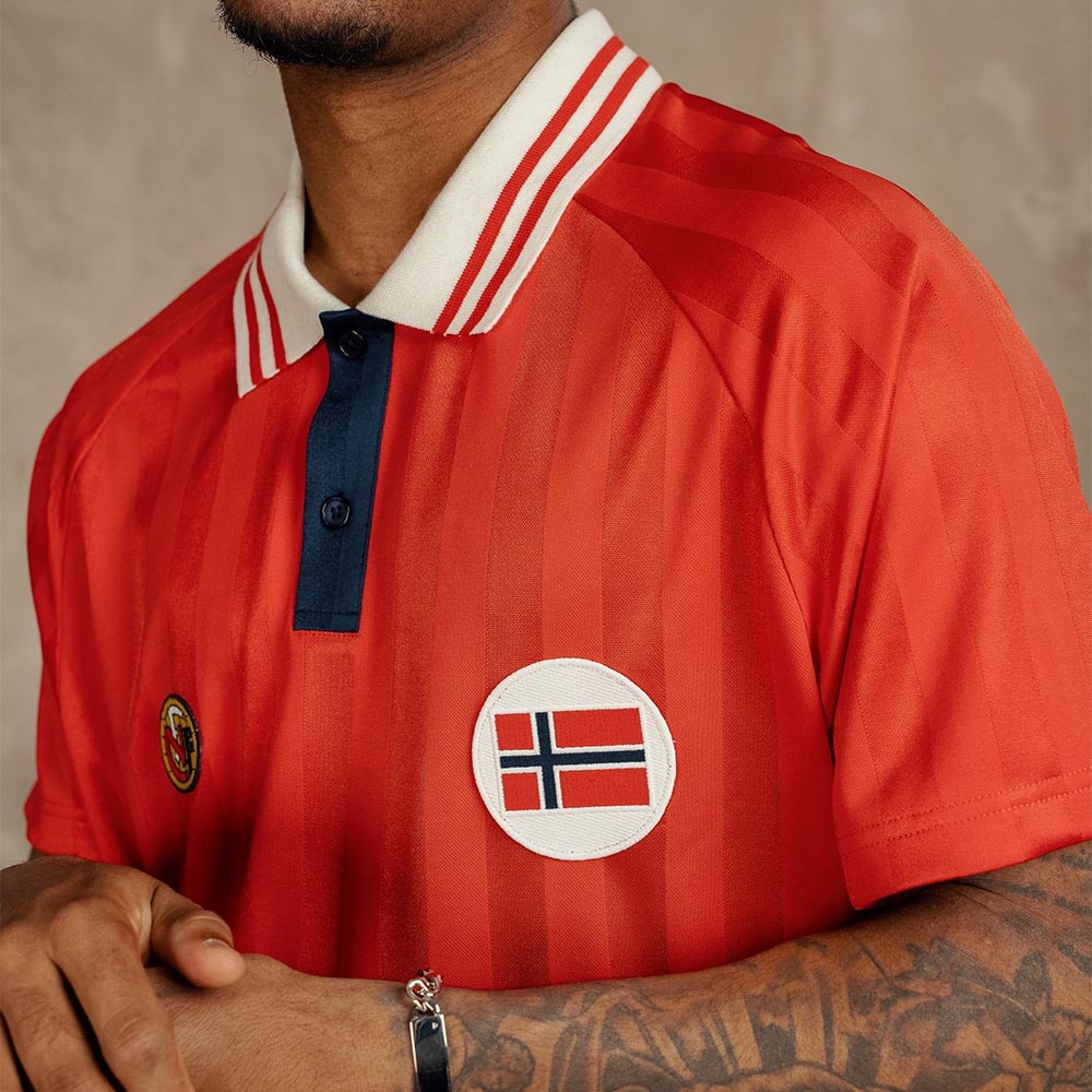 Dette er en moderne tolkning av hjemmedrakten som ble brukt av herrelandslaget under mesterskapet i Frankrike i 1998. Drakten ble blant annet brukt under den historiske kampen mot Brasil hvor Norge vant 2-1 etter skåringer av Tore André Flo og Kjetil Rekdal.