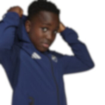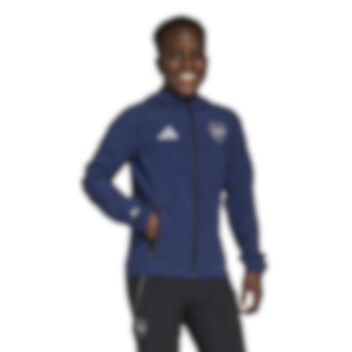 Adidas Arsenal Tiro Competition Vis Tech Travel Jakke til barn er laget med fukttransporterende AEROREADY-materiale som tar svetten bort fra kroppen, samtidig som det holder deg tørr og komfortabel.
