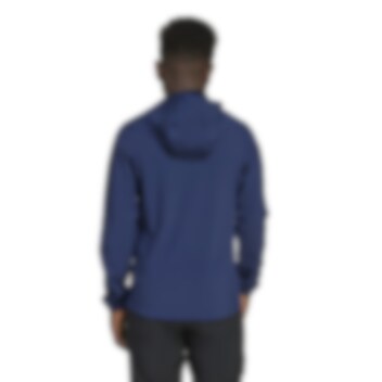 Full-zip-glidelås og hette med strikk for justering av passform.