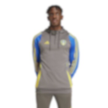 Adidas Leeds United Treningsgenser med hette er en komfortabel og varm treningsgenser laget av et teknisk AEROREADY-materiale. Med 1/4 Zip og klubb-emblem på venstre side av bryst.