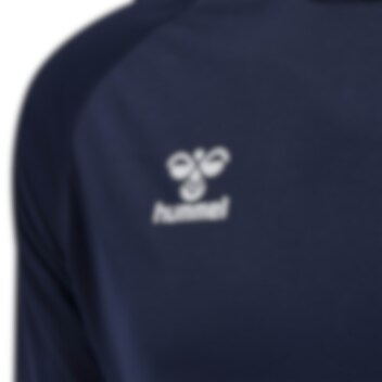 Påtrykket Hummel-logo og Hummel-piler på henhodsvis bryst og armer.