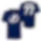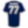 Lag-emblem på magen og spillernavn på ryggen.