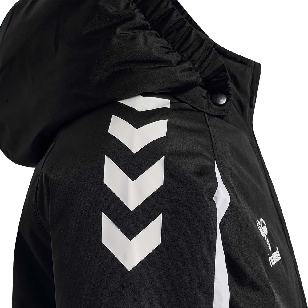 Hummel Drafn Stadionjakke til barn er perfekt når du skal varme opp underveis i kampen eller til når du sitter på benken. Jakken holder deg varm, mens ytterstoffet beskytter deg mot vind og tåler lett regn.