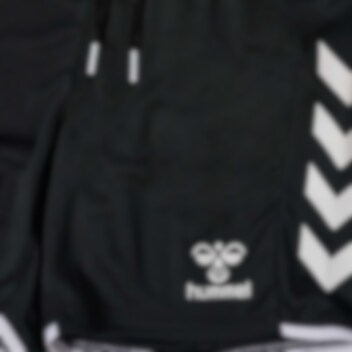 Hummel-logo på venstre side av lår.