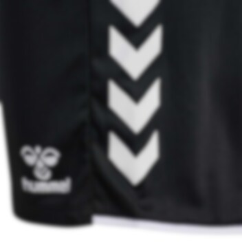 Hummel-logo på venstre side av lår.
