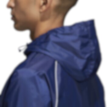 Adidas Core 18 Regnjakke stenger ute det våte været. Hetten og hel glidelås holder deg tildekker og tørr, samtidig som mesh-foret hjelper til med luftgjennomstrømmingen.
