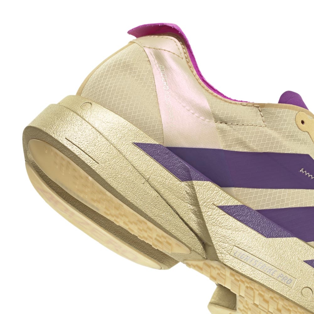 Adizero Adios Pro 4 er laget for én ting: fart på konkurransedagen. Dette er en kompromissløs konkurransesko for løpere som jager personlige rekorder på asfalt, med lav vekt og maksimal respons. Lightstrike Pro-demping kombinert med effektiv geometri gir en rask, drivende løpsfølelse som er skapt for høyt tempo og lange distanser.