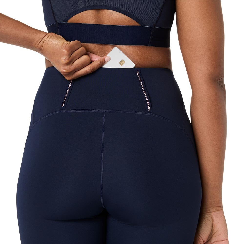 Lomme på låret for telefon eller gel.