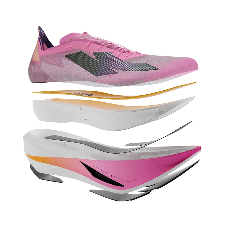 Mellomsåle: Featherbounce PEBA-skum + J-formet karbonplate – høy energiretur, eksplosivt fraspark og effektiv stegavvikling