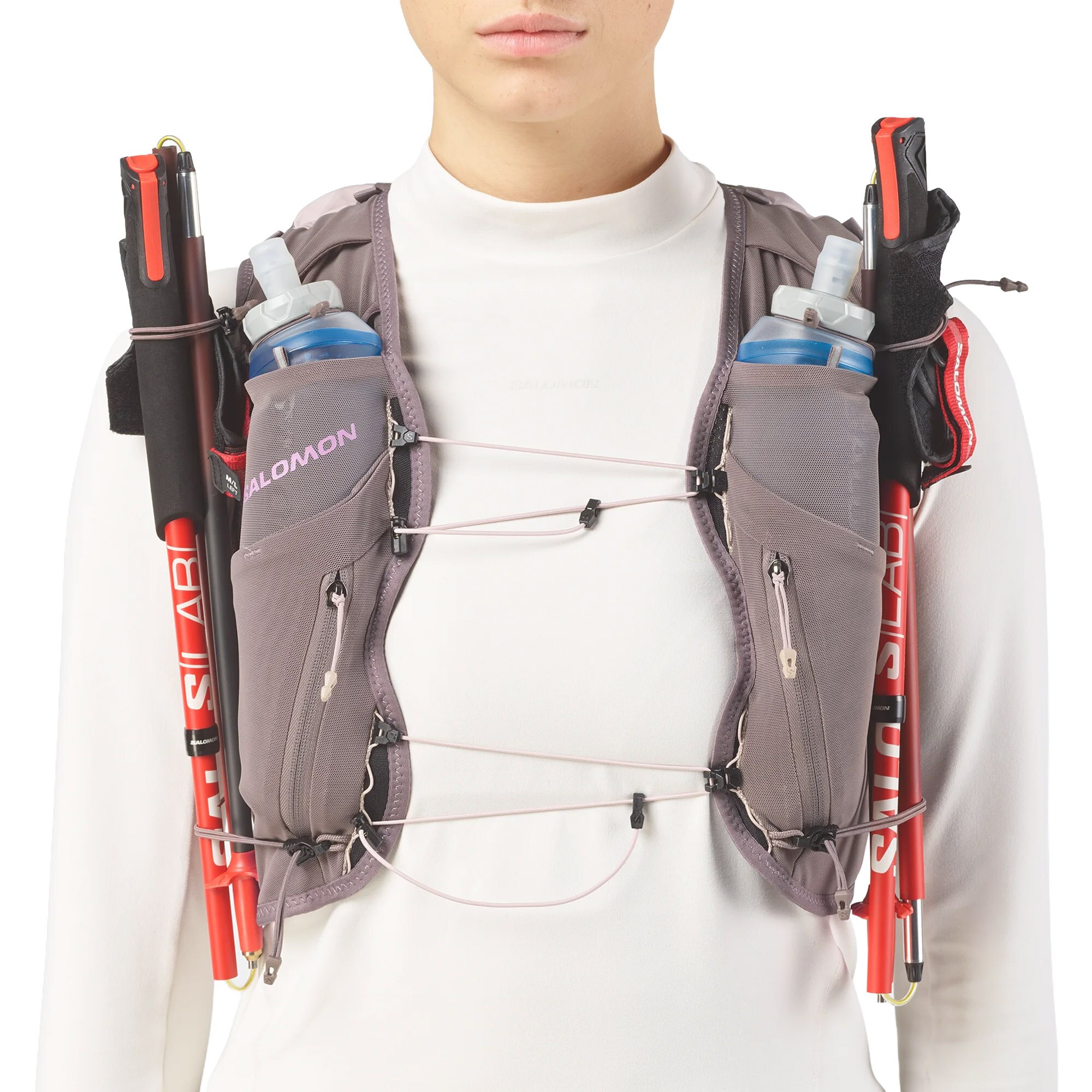 Hydrering: inkludert – myke flasker med rask og stabil tilgang i frontlommene