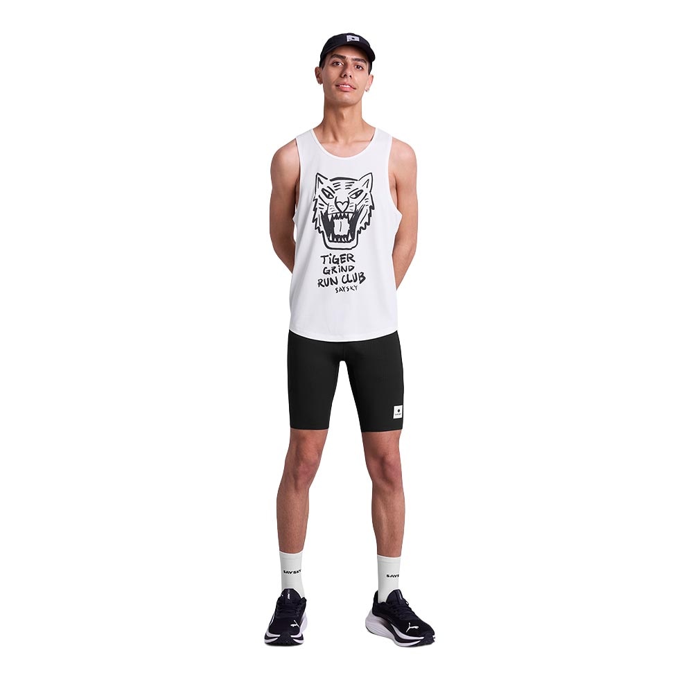 Saysky sin hvite Tiger Combat Pro Singlet er en lett, teknisk og hurtigtørkende løpesinglet som holder deg komfortabel og fokuserer på prestasjonen fra start til mål. Med pustende materiale og atletisk passform gir den optimal bevegelsesfrihet på trening og løp.