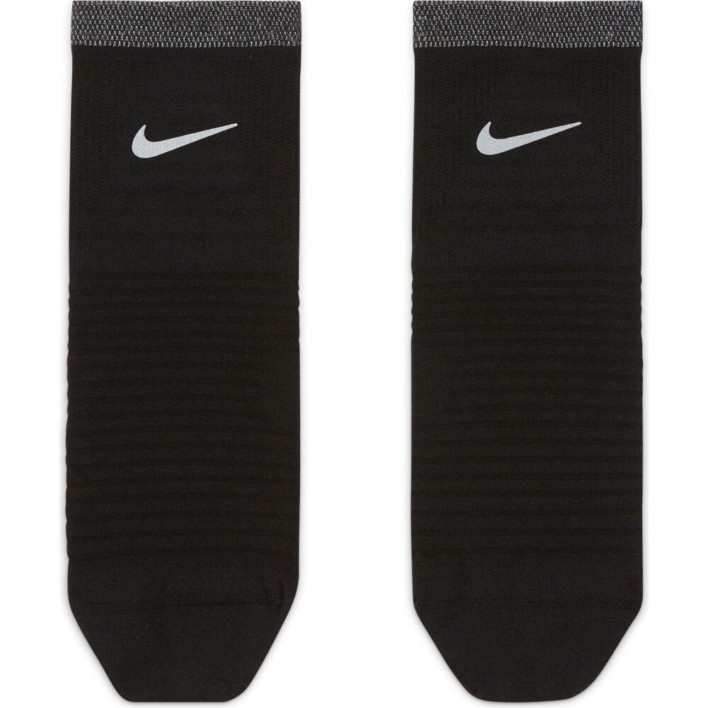 Nike Spark Lightweight-sokkene har et tynt design med svettetransporterende teknologi og nettingmateriale for å holde deg tørr og avkjølt. Ekstra garn i fotsengen og ankelen gir diskré demping og myk støtte ved hvert steg. Reflekterende detaljer er plassert på de viktigste stedene og gjør at denne sokken skiller seg ut fra tidligere versjoner.