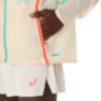 ASICS foretrukne løpejakke for hele sesongen. ROAD PACKABLE JACKET er en lett, gjennomsiktig vindjakke laget av et vevd stoff med en vannavstøtende finish for å beskytte mot lett regn. Den har en justerbar hette, og kan lett pakkes i sidelommen når du ikke trenger den. Det grafiske trykket i begrenset utgave er inspirert av Kabuki-teatersminke i Japan. Denne jakken er også supplert med ekstra ventilasjonsdetaljer under armene for bedre pusteevne.